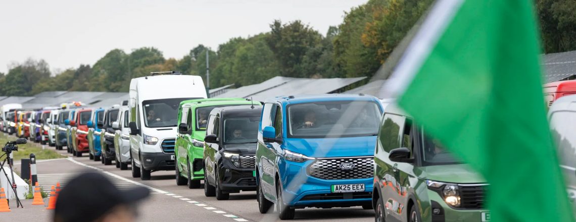 Strastna skupnost uporabnikov Transitov je omogočila rekordni konvoj, v katerem so sodelovali tako bencinski modeli prve generacije kot tudi najnovejši modeli.